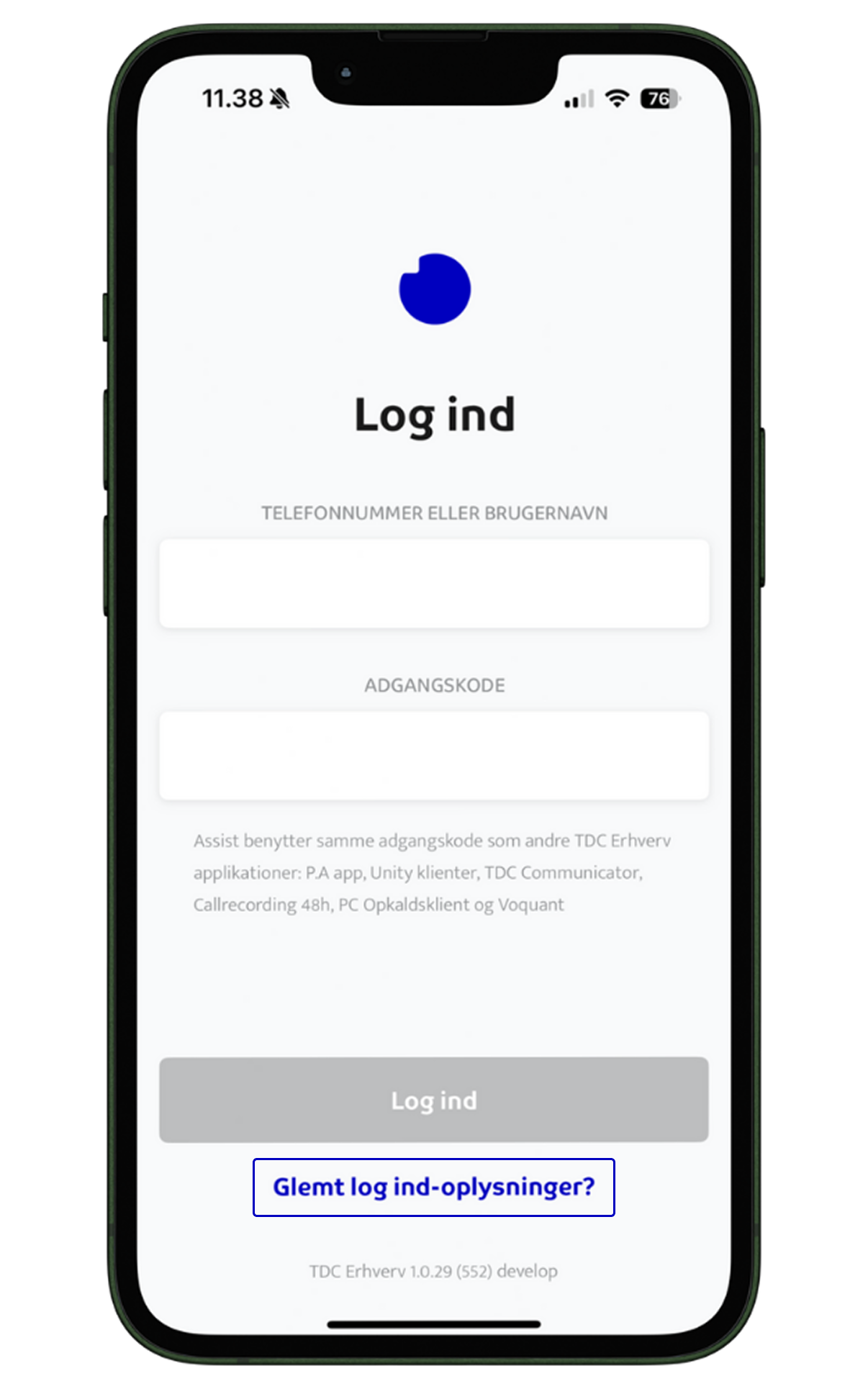 Klik på Glemt log ind-oplysninger i bunden af skærmen, hvor du ellers kan logge ind i appen